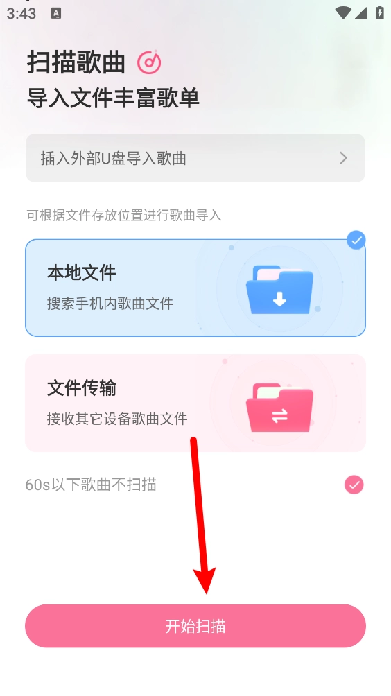 自动扫描您手机里的全部音乐文件,并将它们添加至播放列表。