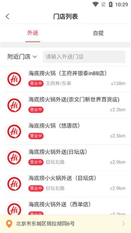 筛选出距离自身位置较近的海底捞门店。