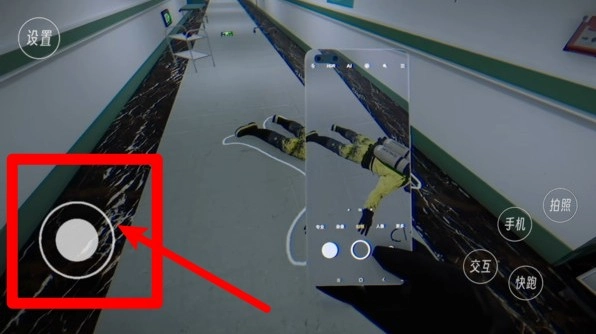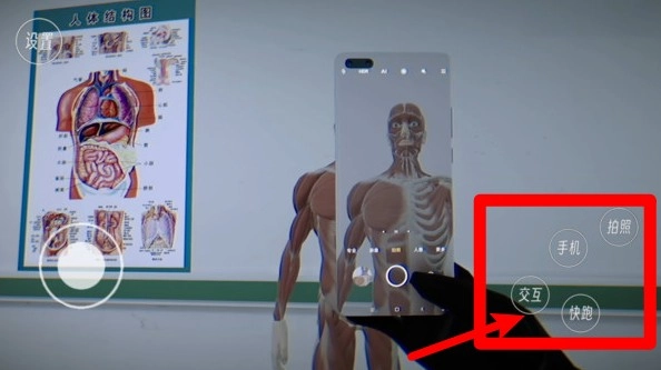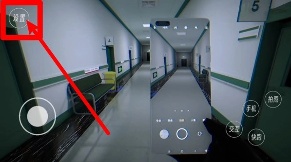 右下角的“手机”“拍照”“互动”“快跑”等按钮是主要操作键,可用于拍照记录异常情况、与物体进行互动调查或是实现快速位移。