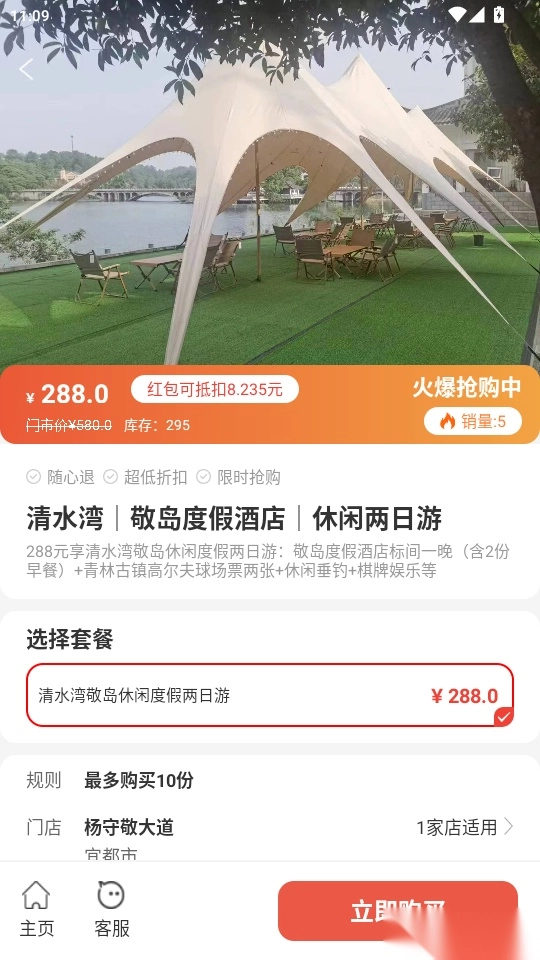 之后可以选择套餐,点击“立即购买”就能直接下单购买所需商品。