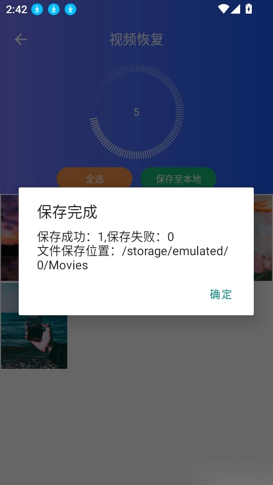观看完广告后就能成功保存,点击“确定”按钮即可一键恢复。