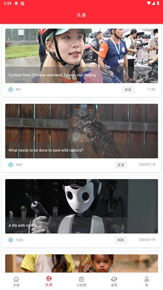 用户点击下方的头条按钮,就能进入头条页面,查看新闻采访或人物自述类文章。