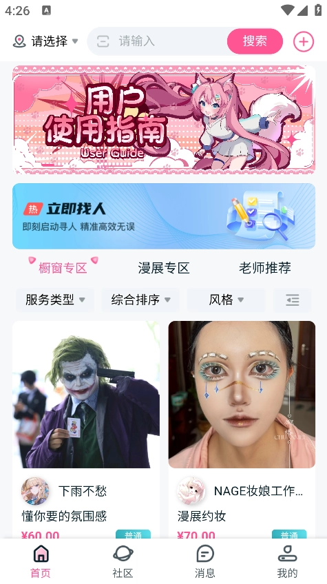 易还原是专注于二次元妆造领域的专业服务平台,面向有化妆、摄影、造型需求的用户。平台一方面为化妆师、摄影师等技能服务者提供线上接单渠道,另一方面通过全程把控交易环节来维护用户权益。用户能便捷找到专业化妆师,满足cosplay、漫展跟妆等二次元场景的需求;服务者也可借助平台拓展客户资源,实现高效接单。平台聚焦化妆、摄影、造型等二次元核心服务,覆盖日常妆造到漫展跟妆的全场景服务方案。同时,平台对服务者资质进行严格审核,保证妆造还原度符合专业漫展评审要求,为用户带来高品质体验。依托AI算法的智能匹配功能,能依据用户需求和服务者技能标签精准对接双方。服务者可通过抢单大厅及时获取订单,用户也能快速筛选出符合期望的服务者,有效提高交易效率。