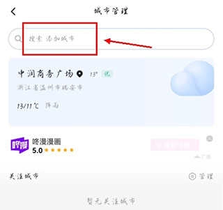 在弹出的搜索框里输入你想关注的城市名称,系统就会自动匹配出相关的结果,整个操作既简单又直观。