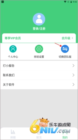 打开软件后,进入“我的”页面,接着点击右上角的团队版切换选项。