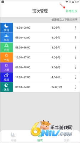 可以长按班次进行上下拖动,方便调整顺序。
