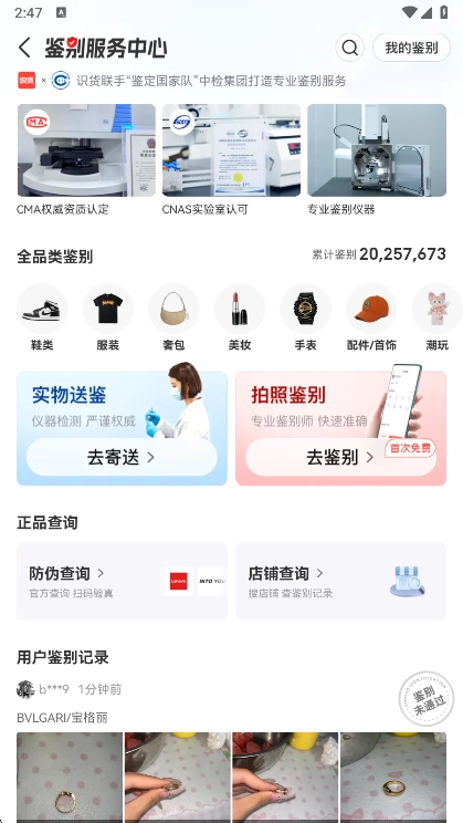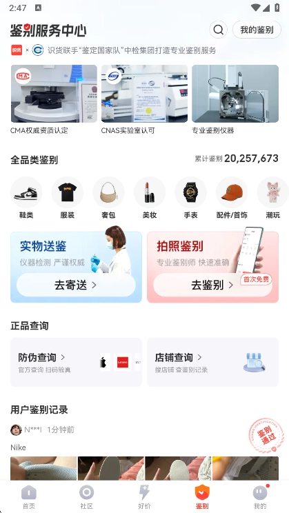 联合行业内资深人士,针对主流商品从外观包装到内部细节展开全方位鉴别,出具专业鉴别结论。目前已累计鉴别装备超20000000件,助力你在网购商品时练就火眼金睛。