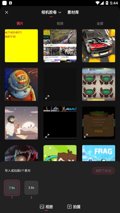 我们可以先把相册里已经拍摄好的视频或相片导入到快影,这样就能开始制作倒放视频了。