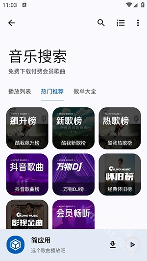 在这里,您可以看到热门推荐和丰富的歌单大全。