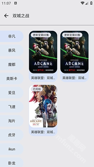 点击搜索后,所有影视源中的搜索结果都会显示出来。