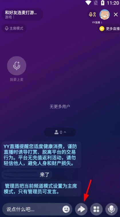 然后进入你创建好的房间,点击底部的“分享”图标,就能通过这个接口分享给好友,一起连麦玩游戏。