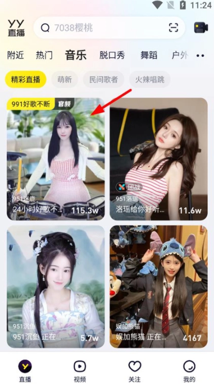 如图所示,点击"直播间/频道"进入即可。