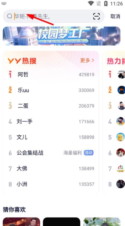 还可以在直播页面点击上方的搜索框,搜素相关频道。