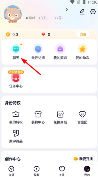 在我的页面点击"聊天"进入。