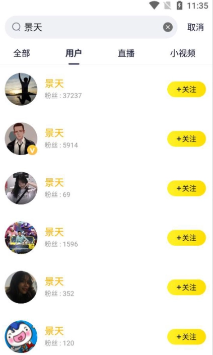 还能在搜索框里直接搜索名字,把类别切换成“用户”,然后点击“关注”就能进入了。