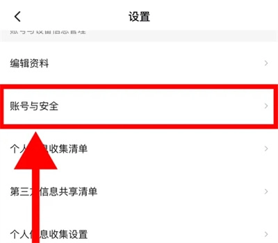 进入西瓜视频的设置页面后,找到“账号与安全”选项并点击进入。
