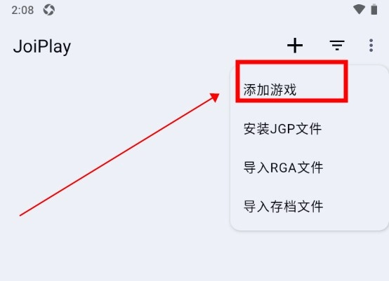 打开joiplay模拟器1.20.410软件,然后点击界面右上角的“+”按钮。