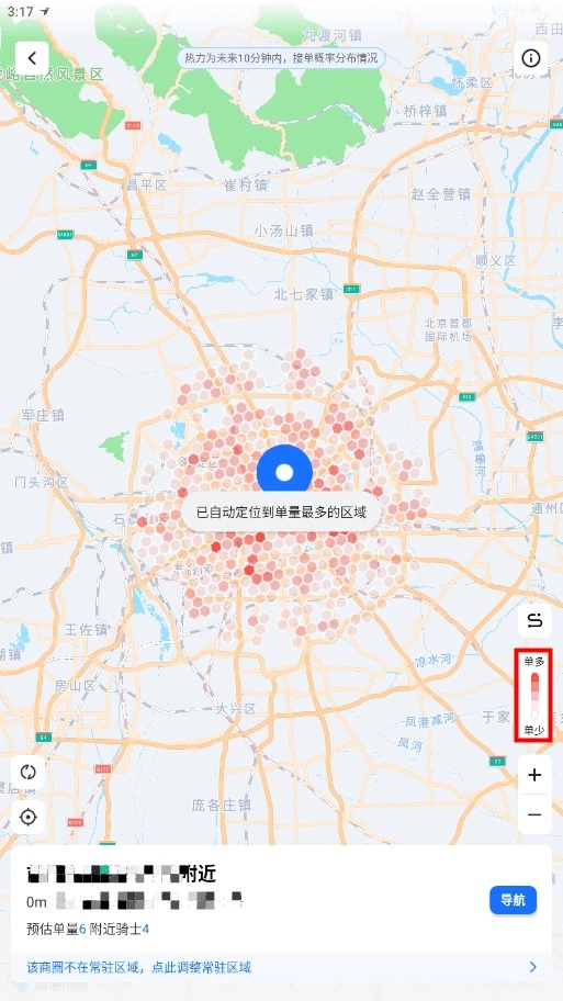 这里能清楚看到,颜色越深的区域,订单量就越多,而骑士数量则越少,这种对应关系十分明显。