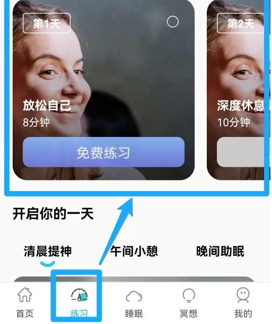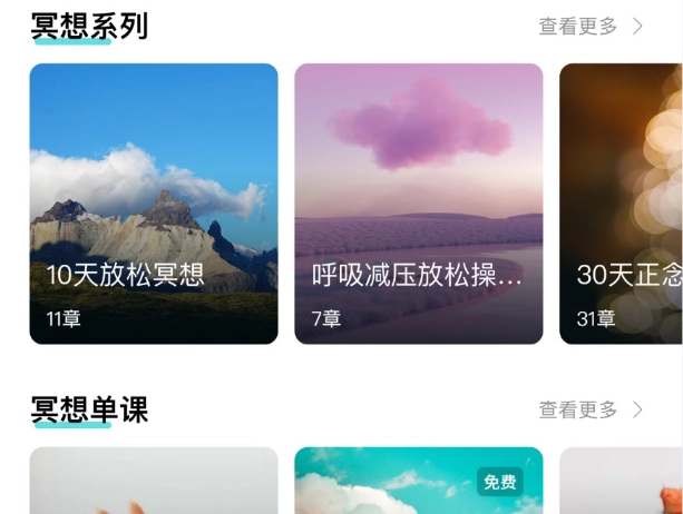 呼吸练习、自由练习、减压视频、睡眠管家、电子木鱼这些功能,都能在【首页】顶部广告下方的横拉模块里找到。