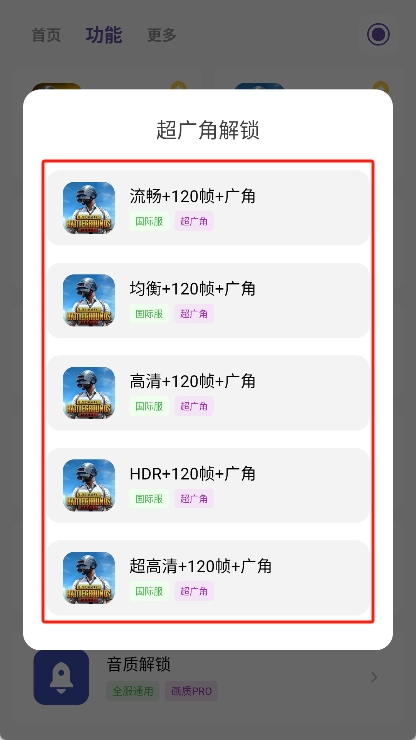 进入功能页面后,点击“超广角解锁”选项,然后选择自己习惯的游戏视角。