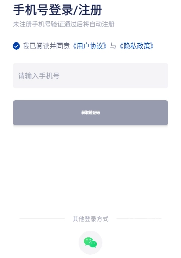 最后用手机号及验证码或用微信登录即可。