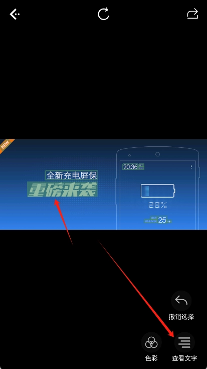 扫描结束后,选中图片里的文字,然后点击右下角的“查看文字”按钮。