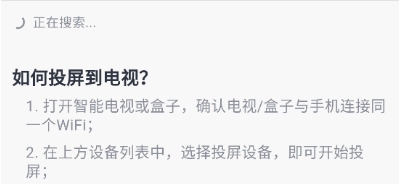 请稍候,系统正在搜索周边可投屏的设备,待搜索结果显示后,你只需从列表里挑选对应的电视或其他投屏设备完成连接即可。