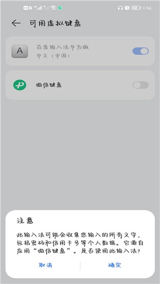 开启微信键盘,点击确定。