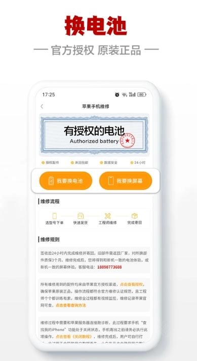 【更换电池服务说明】我们所使用的全部电池均采购自官方授权渠道,电池更换操作严格遵循专业维修认证规范执行,且整个维修过程都配备了视频监控,确保服务透明可追溯。