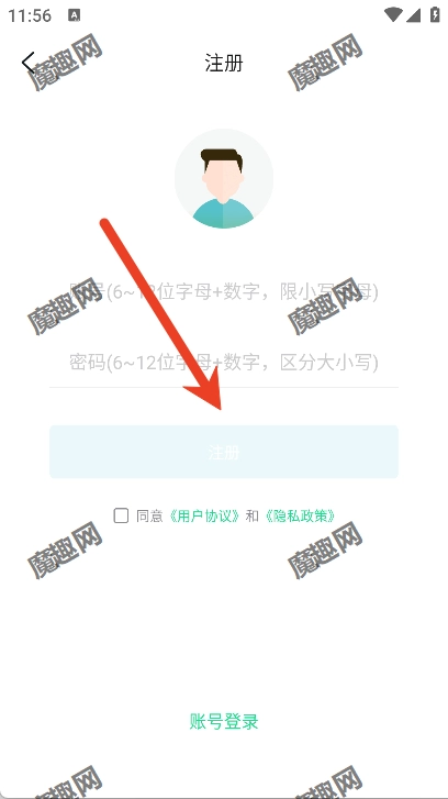填写账号、密码点击注册就可以啦