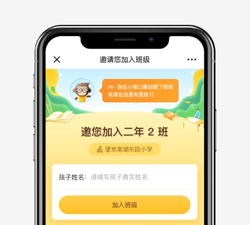 填写班级编号与孩子的真实姓名(班级编号可向老师咨询,或从老师发送的邀请链接里获取)。