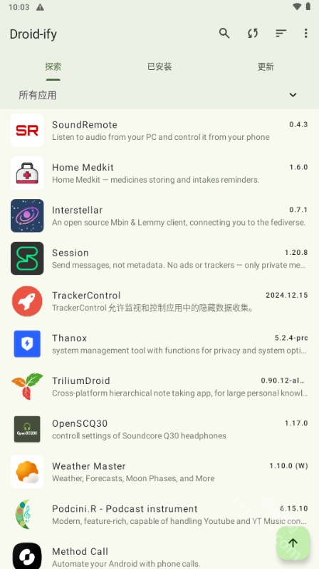 资源丰富:借助Droid ify,用户能够获取F-Droid社区里的众多趣味资源,涵盖各类开源应用、工具、游戏等。