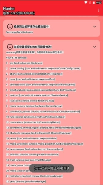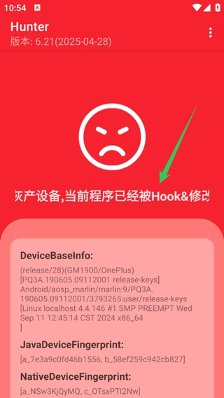 Hunter检测工具主要用于扫描设备是否拥有Root权限、是否安装了Magisk/Xposed框架、是否处于模拟器运行环境,以及检测设备指纹是否存在异常情况。