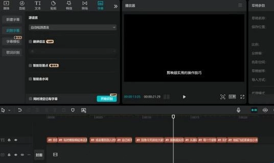 是不是觉得这个字幕看起来乱糟糟的?要是这样的话,把它删掉就好啦。接着选中刚才生成的音频,在左边找到“字幕”选项点一下,再选择“识别字幕”,然后点击“开始识别”。现在效果如何?配音和字幕都弄好啦,而且匹配得特别好,根本不用手动调整字幕。