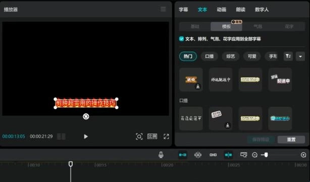 在右侧把字幕的字体和大小调整好,还能选择“花字”效果,让字幕看起来更亮眼;也可以选用“模板”,这样每个字都会跟着声音节奏呈现动画效果。设置完成后,记得把字幕轨道和声音轨道旁边的小锁图标点击锁定,这样后续进行视频剪辑操作时,就不用担心这两个轨道的内容被意外弄乱了。