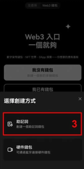 打开币交易所App,切换至Web3钱包首页完成「注册」操作——这一步是创建专属的多链钱包。若此前未使用过去中心化钱包,建议选择助记词方式建立;若已有冷钱包,或曾在MetaMask等平台创建过钱包,则可在第二步选择导入钱包。