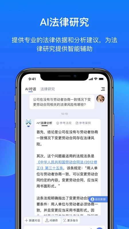 ● AI法律咨询服务:涵盖各类法律案由,无论是婚姻家庭问题、房产纠纷,亦或是交通事故相关事宜,AI都能通过精准理解用户提出的问题,准确引用对应的法律法规与司法案例,助力用户解答具体的法律疑问。