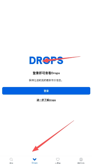 登录天巡Drops,深入掌握往返航班的最新降价动态。