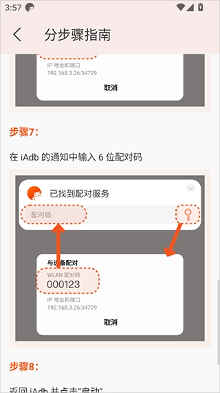 在iAdb的通知里填入6位配对码,接着回到iAdb界面点击“启动”按钮就可以了