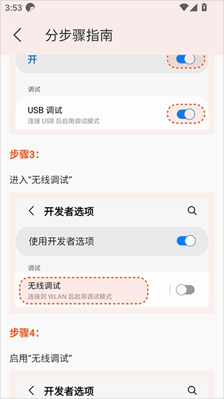 针对开发者或高级用户,这里设有一个便捷的调试入口,让他们无需依赖USB数据线即可进行调试操作。