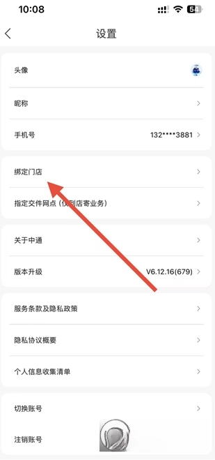 在设置页面点击绑定门店选项,进入绑定门店页面。