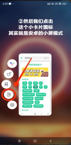 然后我们点击这个小卡片图标,它对应的其实就是安卓系统的小屏模式。