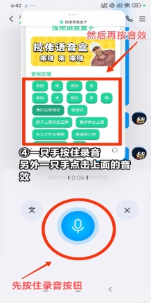 按住录音按钮后点击上方的音效即可