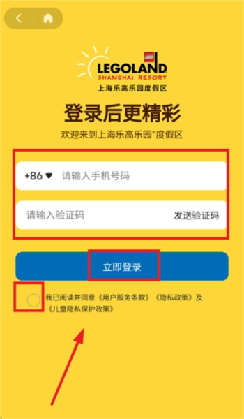 进入登录页面后,填写手机号和验证码,勾选“我已阅读并同意《用户服务条款》《隐私政策》与《儿童隐私保护政策》”,最后点击“立即登录”按钮就可以完成登录操作了。