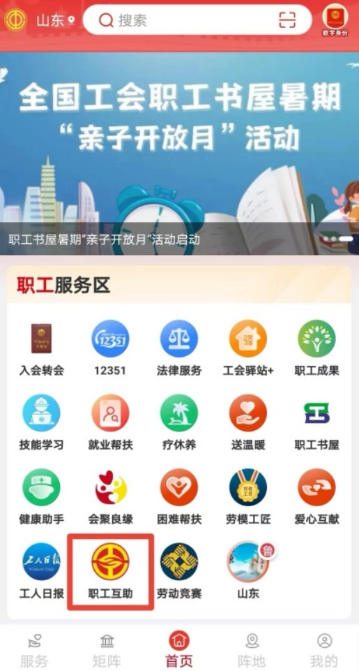 在“职工服务区”,选择“职工互助”