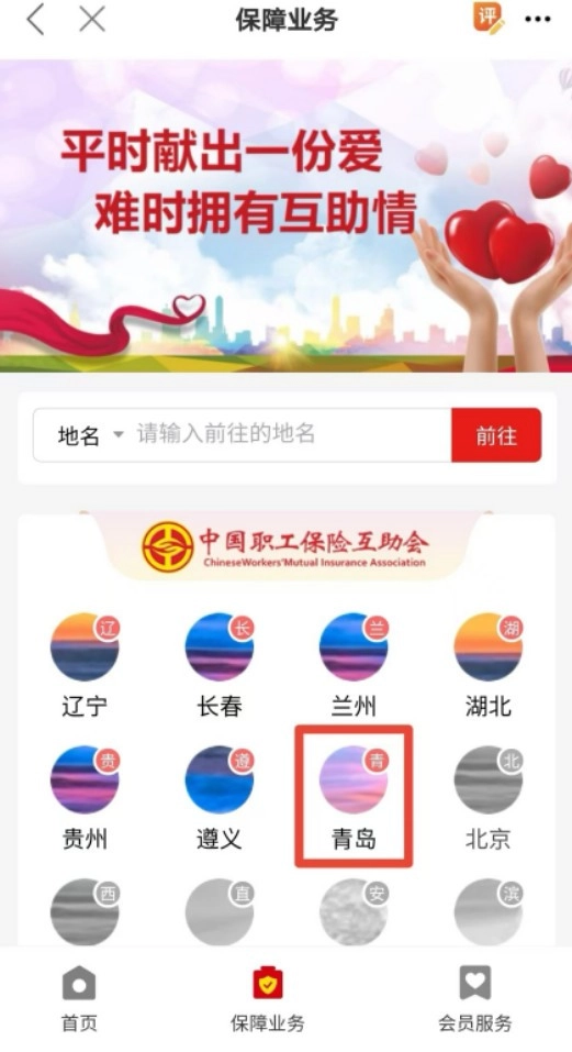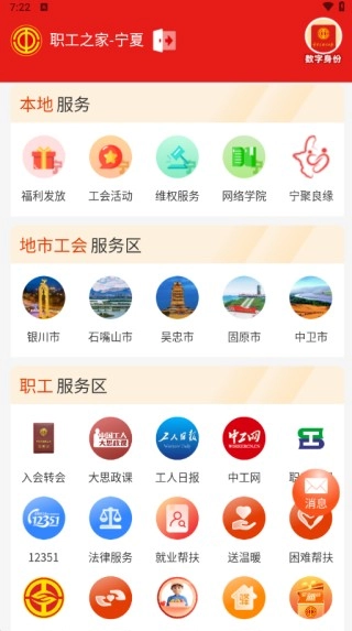 点击城市后进入宁夏的职工之家,能够使用当地的福利发放、工会活动等相关功能。