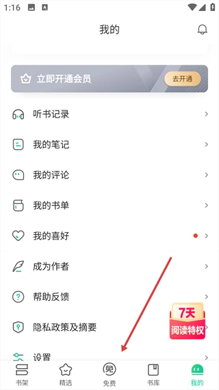 在爱奇艺小说的首页找到【我的】按钮并点击,即可进入个人中心页面。