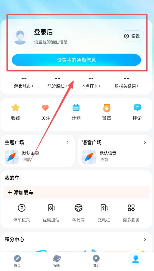首先登录账号同步你的数据,之后在我的车辆里可以添加车牌、查询限行,还能探索租车卖车等各类车主服务。